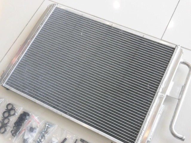 こちらが外した純正とAPR CPS ラジエーターの比較画像です。