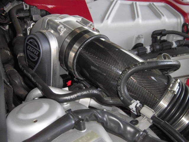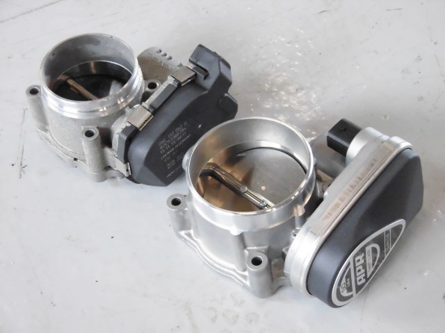 こちらが純正スロットルボディとAPR ウルトラチャージャー スロットルボディ