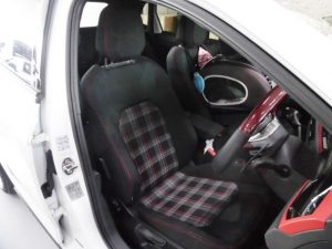 フラット形状の純正ファブリックシートからセミバケタイプのSR-Sに変わり