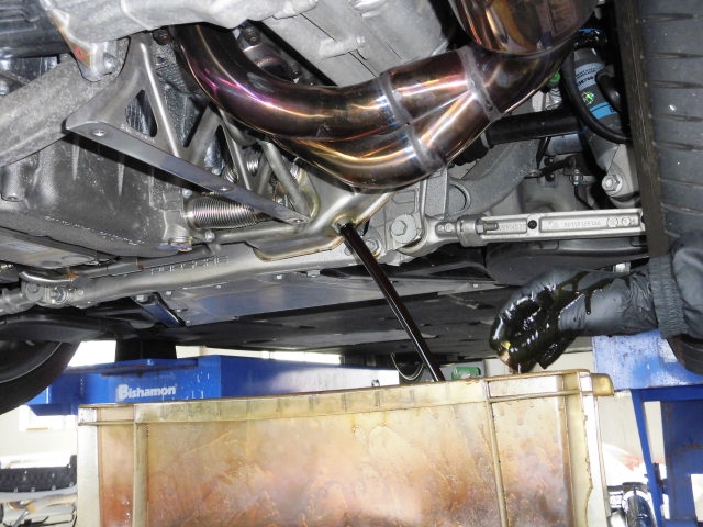 GT3はドライサンプなので数カ所からオイルを抜く必要があります。